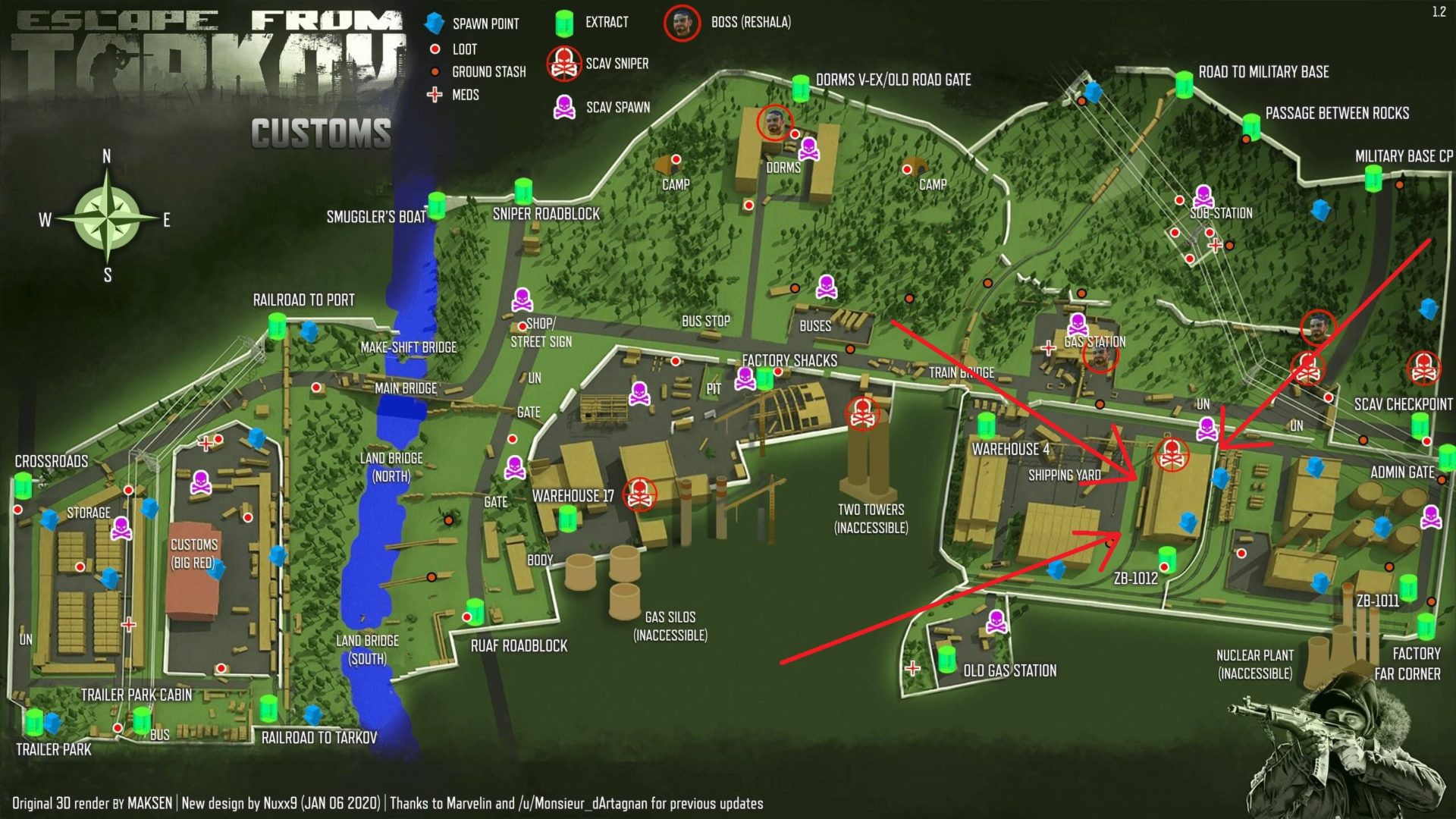 Customs – I often find Expeditionary Fuel Tanks in the warehouse above the ZB-1012 extract. The screenshots below show where the warehouse is and where the tanks may appear.
