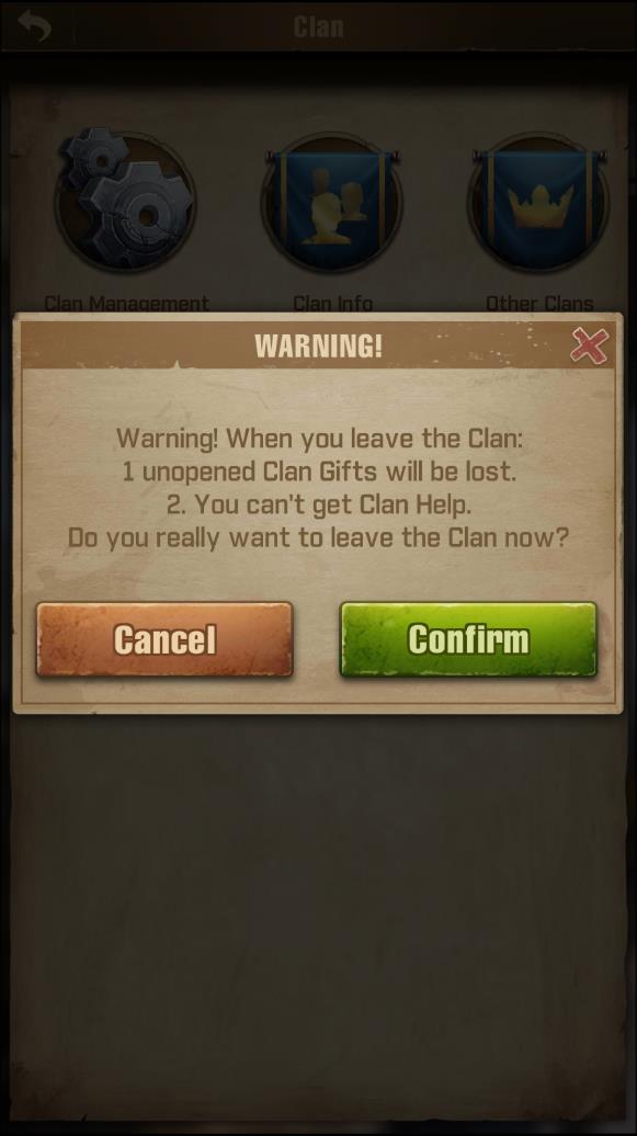4. Tap confirm on this window to officially leave your clan.
