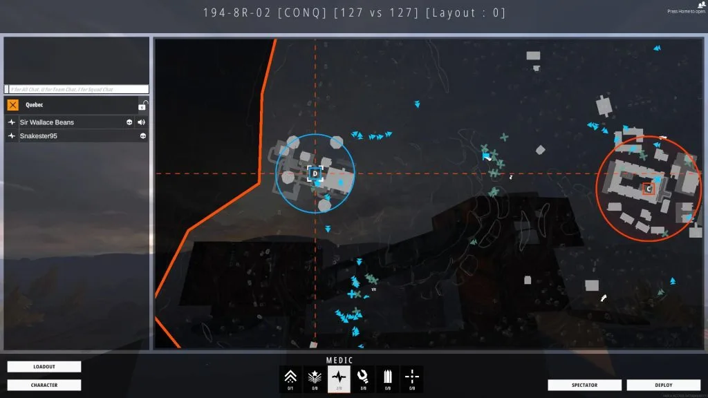 Once you’ve joined a match you’ll need to make sure you don’t accidentally spawn into the game. Otherwise, you’ll need to wait until you die or press Escape and then use the Respawn button. This is because you can only change class at the deploy screen where your map is visible.