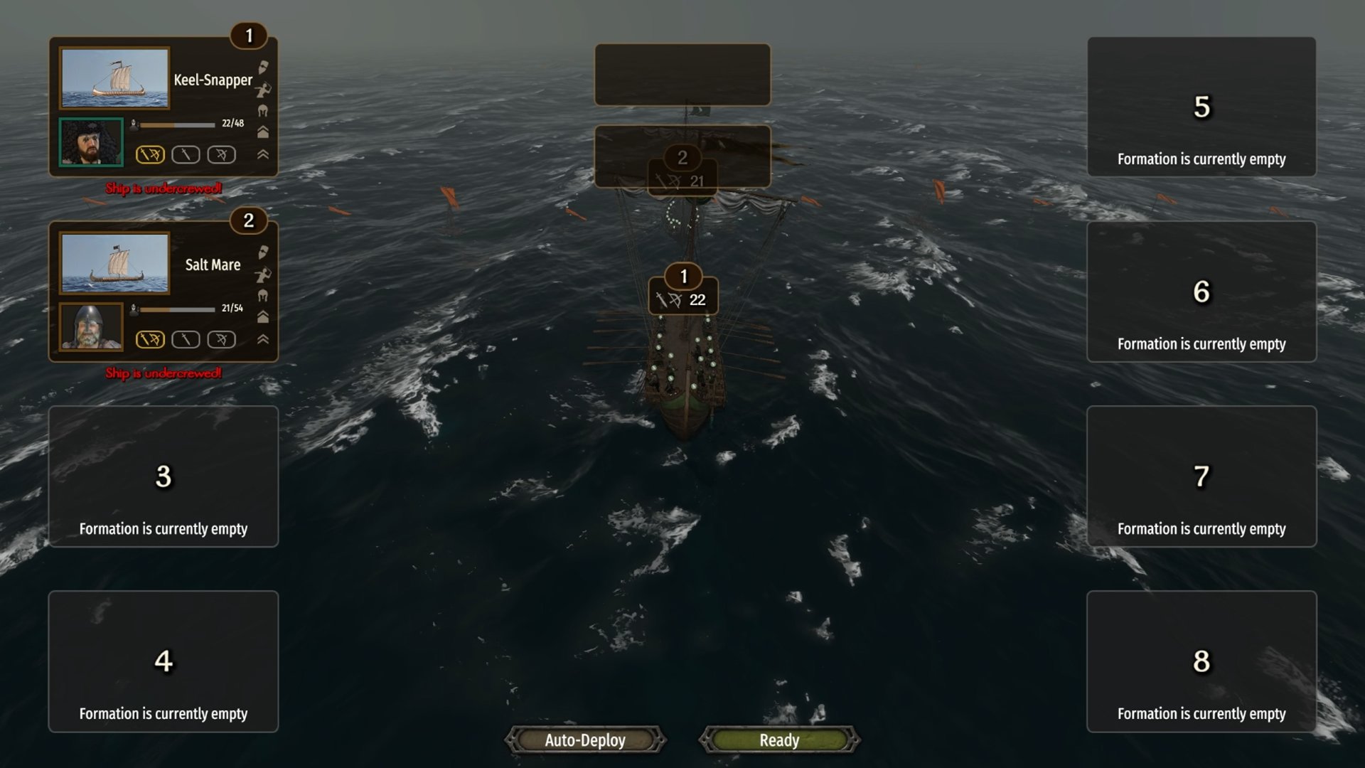 If you’re already in a battle and see the message that your “Ship is undercrewed!”, you’re not completely screwed. You can either focus your troops all into one boat or deal with them being a bit slower.
